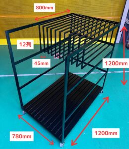 当社の分電盤パネルラックは、仕切りの角パイプは六角ネジで留めてある為、立てかける製品に応じて幅の調節が可能です。